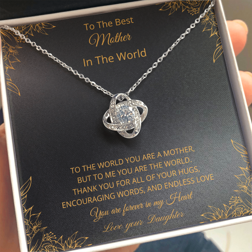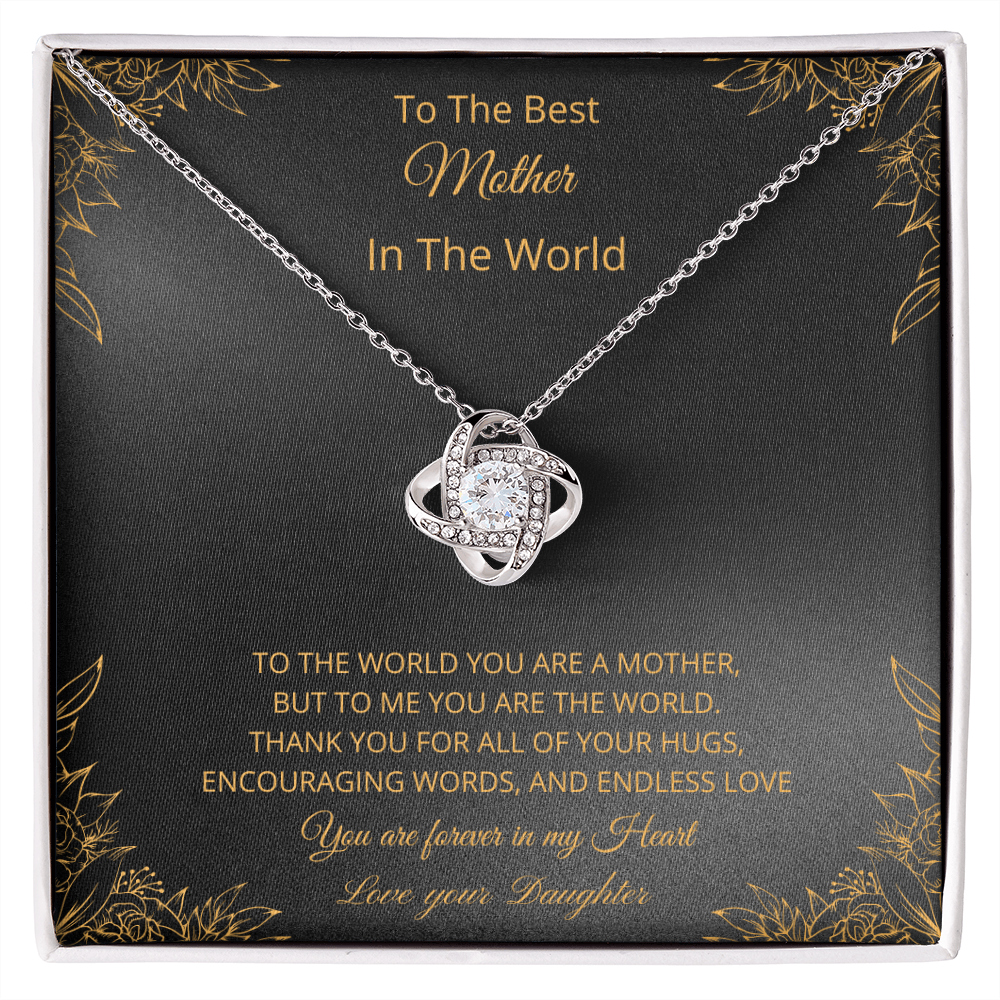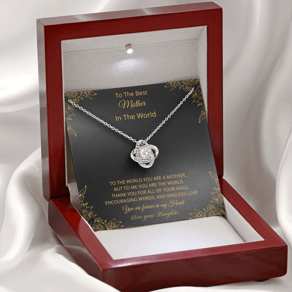 Imagine her reaction receiving this beautiful Love Knot Necklace. Representing an unbreakable bond between two souls, this piece features a beautifully woven pendant embellished with premium CZ stones. Choose between either a luxurious 14k white gold finish or a timeless 18k gold finish to complete the look. Surprise your loved one with this gorgeous gift today!