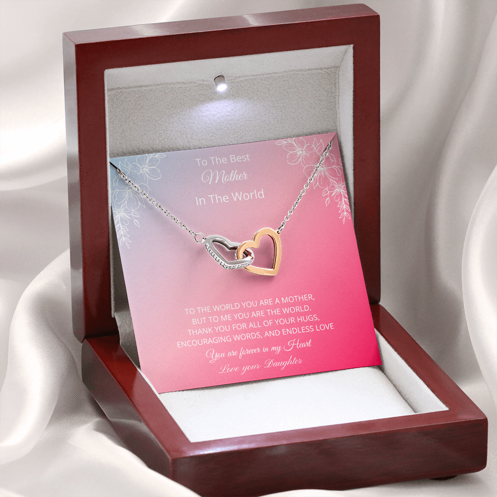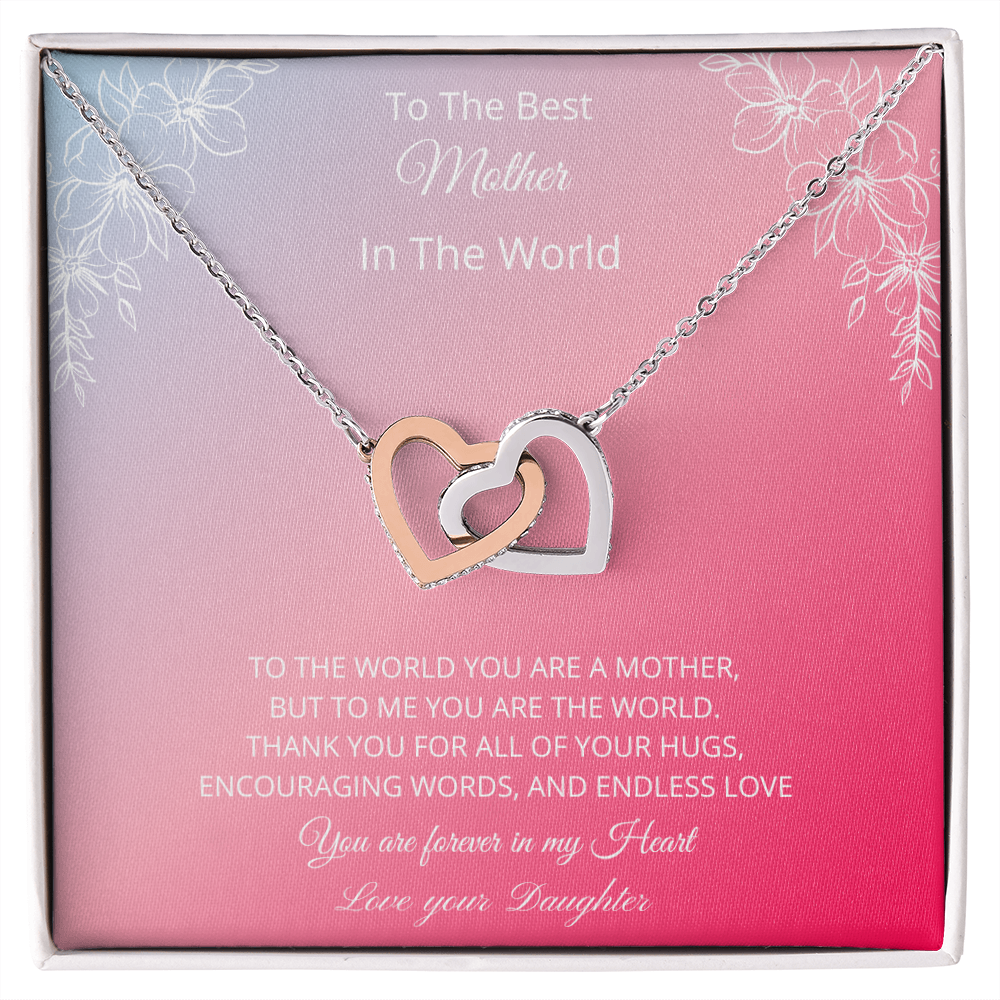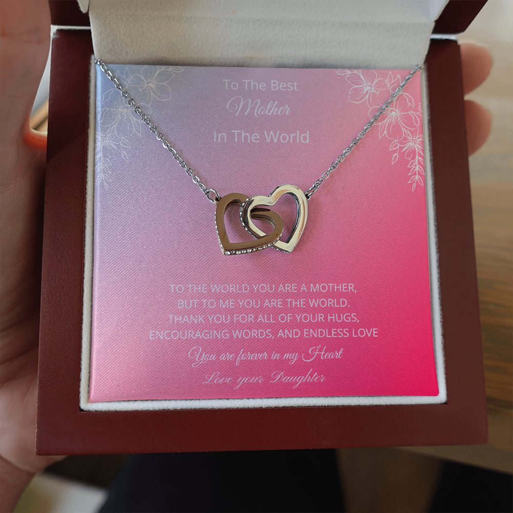 To The Best Mother In The World - Pink (Interlocking Hearts necklace)