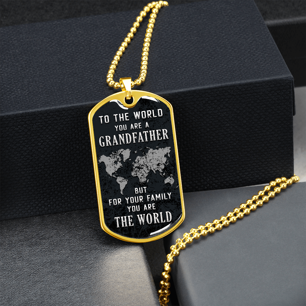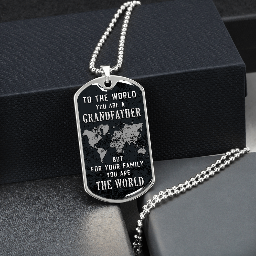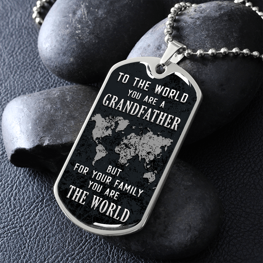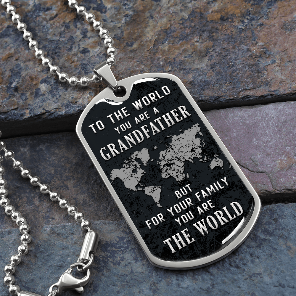 To The World You Are A Grandfather But To Your Family You Are The World (Graphic Dog Tag Ball chain necklace)